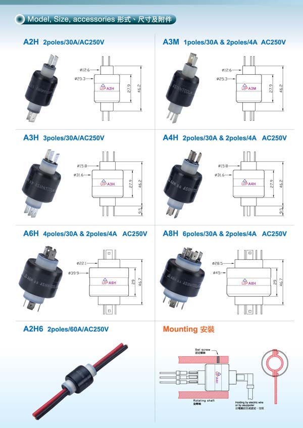 ● Asiantool水銀滑環(huán)利用特殊密封、絕緣及導(dǎo)電技術(shù)制成,外殼為鋁合金或不銹鋼;